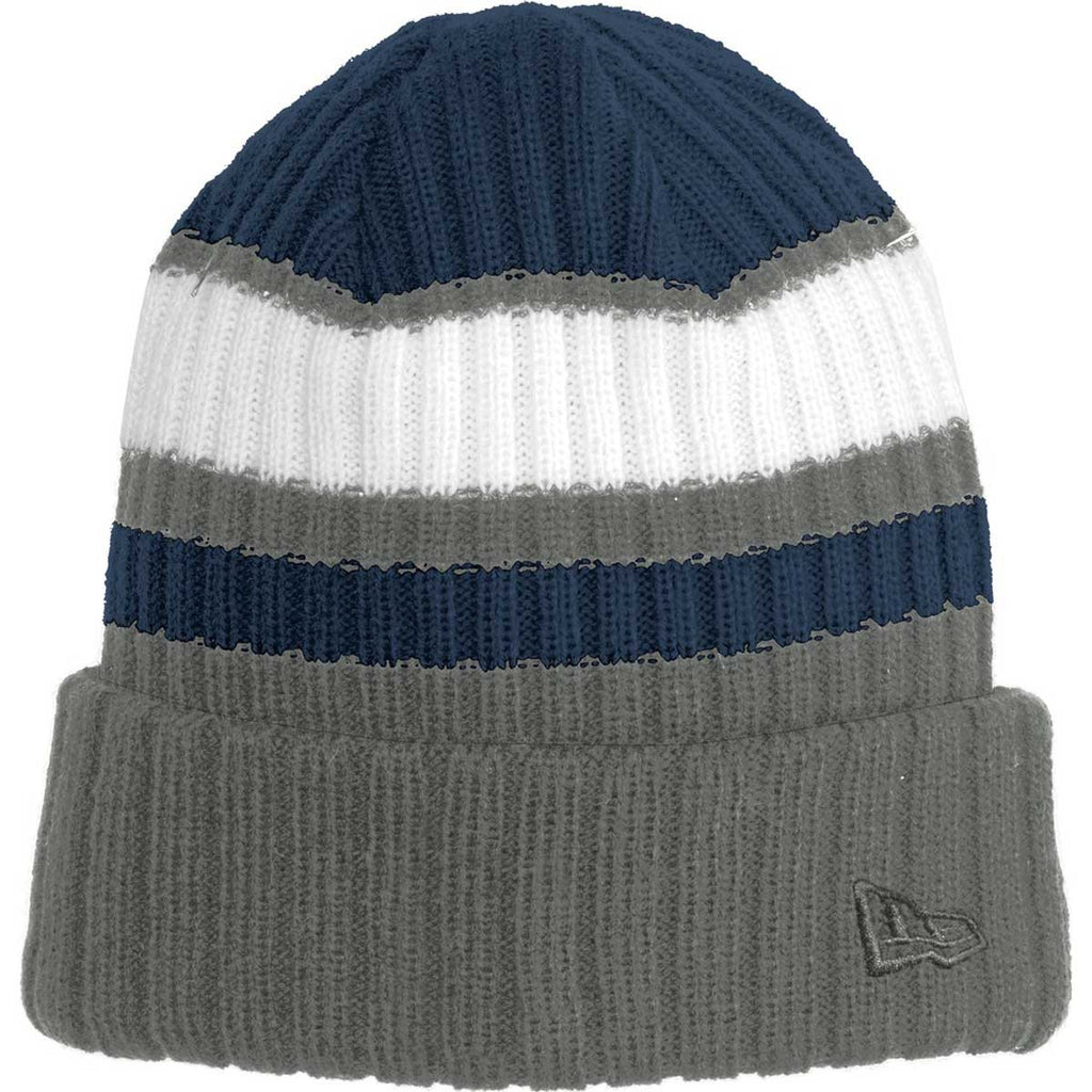 With multi-stripes, the New Era Knit Navy/Graphite Ribbed Tailgate Beanie keeps you warm before baseball and football games. The stylish design stands out in a crowded field of mundane winter hats. With attention focused on your new tailgate beanie, why not take advantage of the interest by adding your company logo to the large area on the back of the beanie. Designed with 100% acrylic yarn, the beanie stretches to comfortably pull over your head. The highly breathable beanie makes the ultimate corporate gift to reward loyal customers for their business.