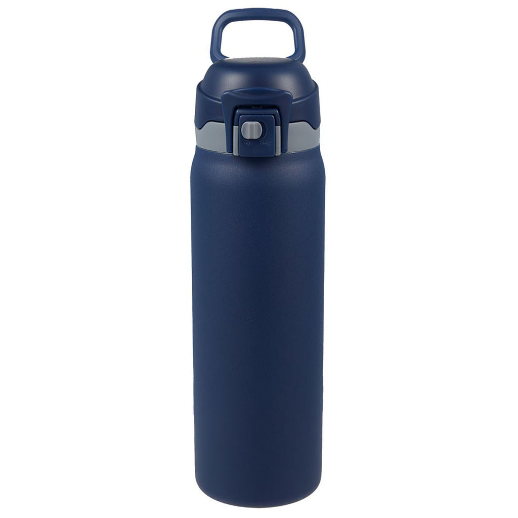 Stay hydrated with a corporate logoed Leed's Navy Rhine 2 in 1 Vacuum Eco-Friendly Bottle 30oz. This larger capacity bottle is made for an active lifestyle with two drinking options, slide and press or sip and swig and a lockable lid with leakproof security. Great for hiking, biking, commuting, or going to class with your favorite drink in hand.