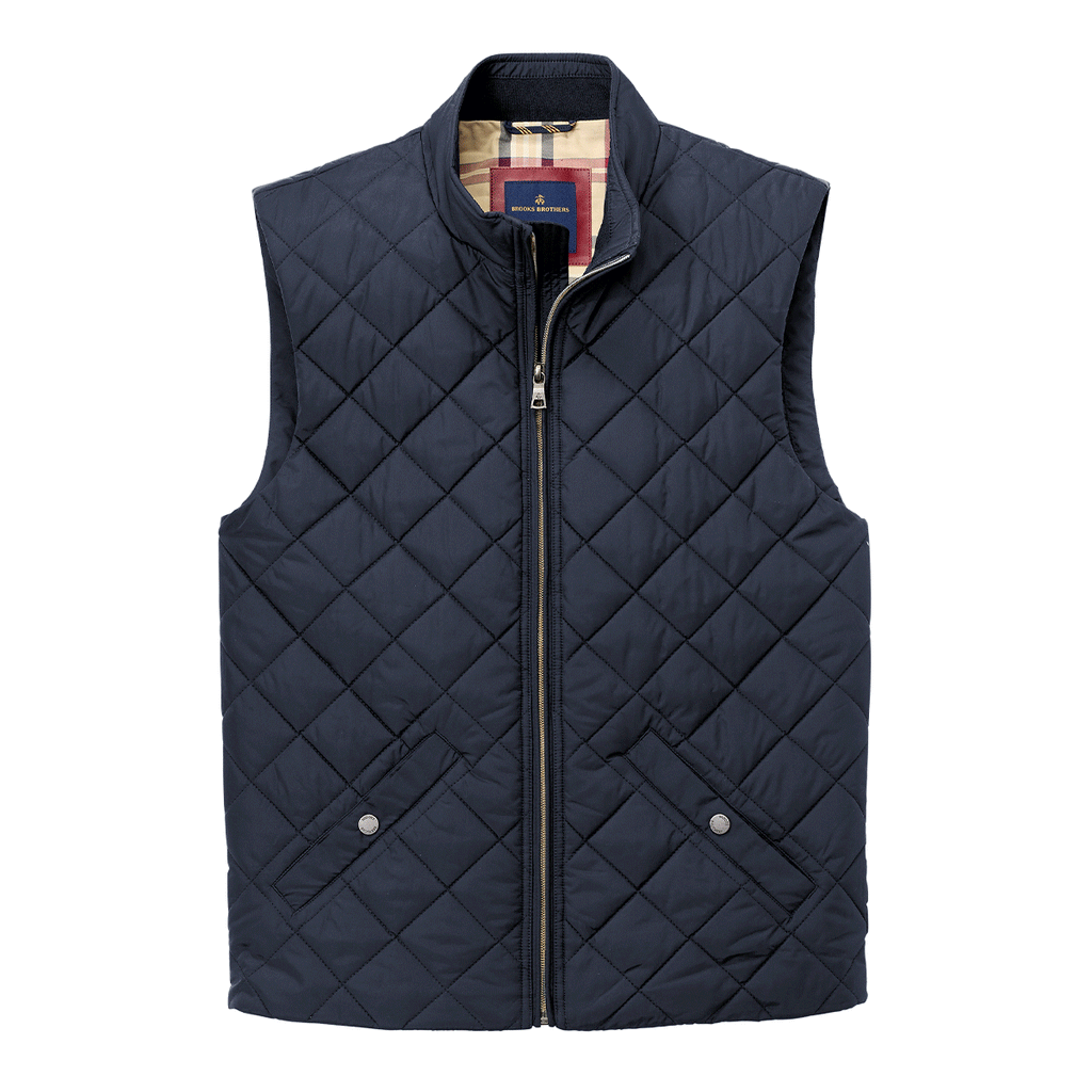 Stand out with a custom embroidered Brooks Brothers Men's Night Navy Quilted Vest. Metal front zipper and details make for the trademark suaveness and sophistication made for any boardroom or tradeshow. Have your entire team stand out with this high-quality, professional vest.