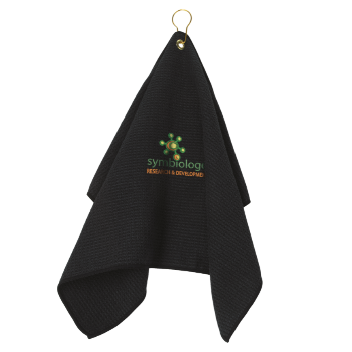 The logo-branded BIC Black Golf Waffle Towel is the perfect gift for the golf lovers on your team. It has a super absorbent waffle texture and a hook and grommet to attach to your golf bag. Your company's logo will appear in the center of this custom golf towel. The branded BIC Black Golf Towel is a great gift for giveaways, customers, or employee appreciation.