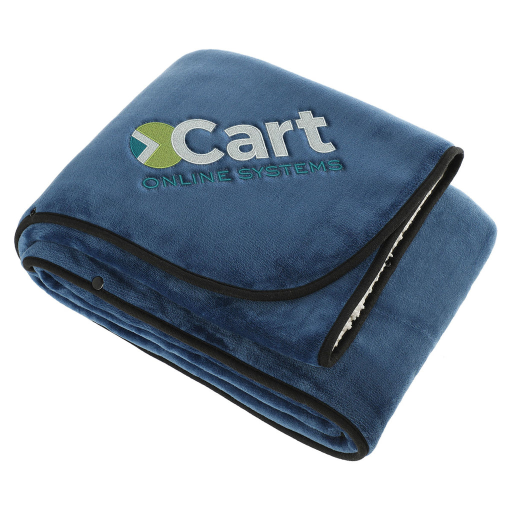 If you're looking for a promotional item that will keep your employees comfy while they work from home, the Leed's Navy Oversized Wearable WFH Cozy Fleece Sherpa Blanket has got your covered. This blanket measures 50" X 70" and features a fuzzy outer shell on where you can embroider your company's custom logo.The minimum order for this product is 24 piece.