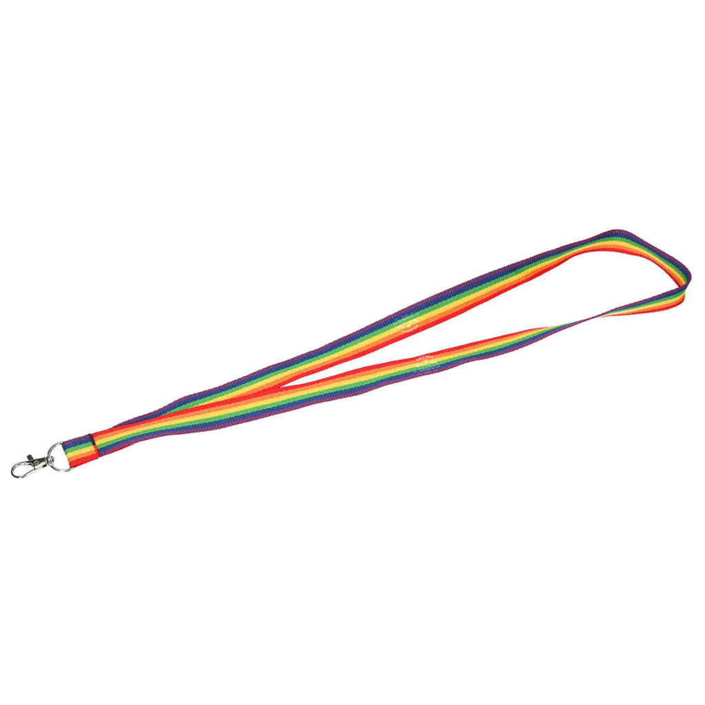 Perfect for Pride Month and beyond, the Bullet Rainbow Recycled Polyester Rainbow Lanyard is a bold way to take your company's custom logo or design to the next level. Made from recycled polyester, it measures 19" long and has a lobster clip at the end for carrying keys or displaying identification.