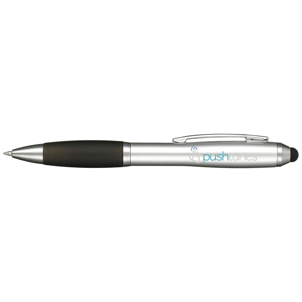 Your company's custom logo will look great on the Bullet Black Nash Gel Stylus Pen, which comes complete with desirable details like an ultra-smooth black gel ink cartridge and a colorized rubber grip for an added pop of color. It even includes a soft rubber stylus tip that works on touchscreens of all kinds.Highlights