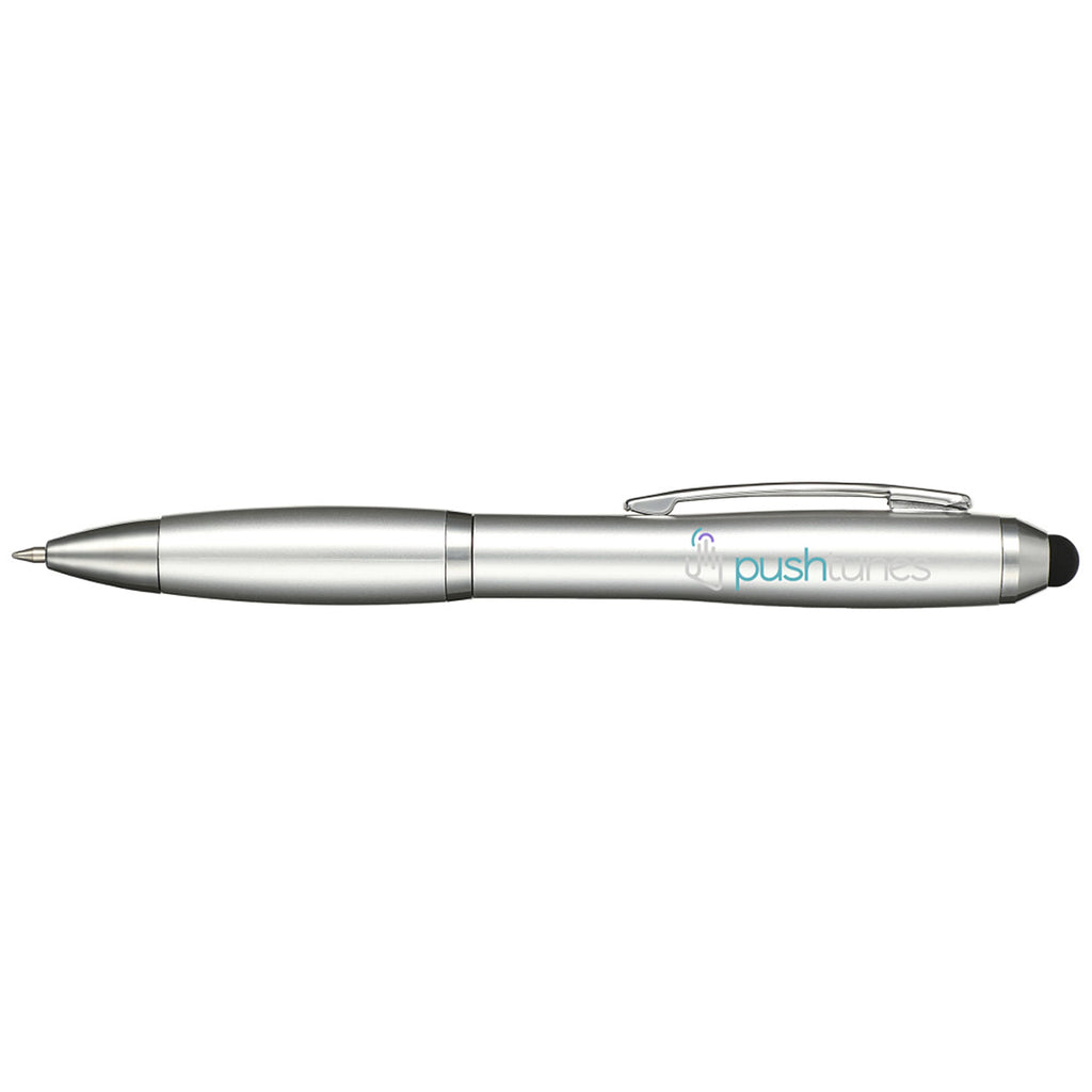 Your company's custom logo will look great on the Bullet Silver Nash Gel Stylus Pen, which comes complete with desirable details like an ultra-smooth black gel ink cartridge and a colorized rubber grip for an added pop of color. It even includes a soft rubber stylus tip that works on touchscreens of all kinds.The minimum order for this item is 500 pieces.