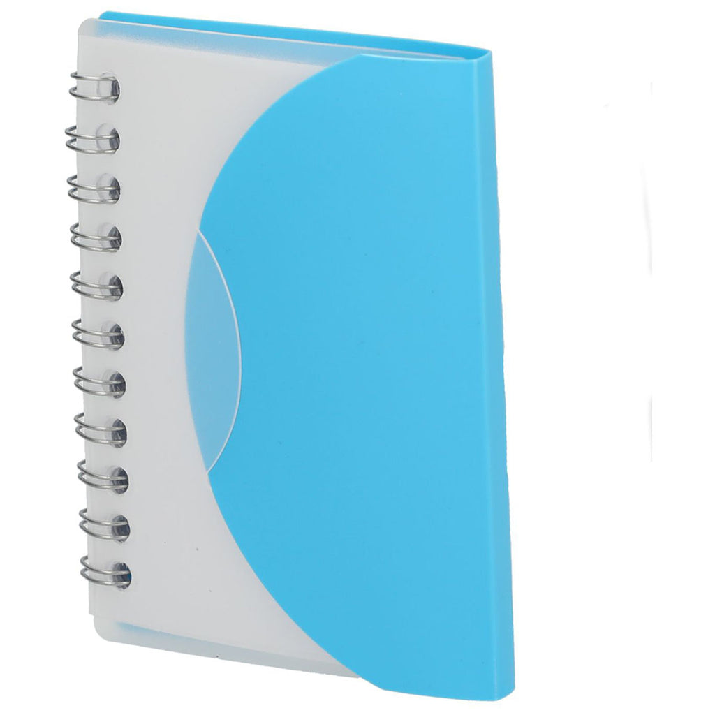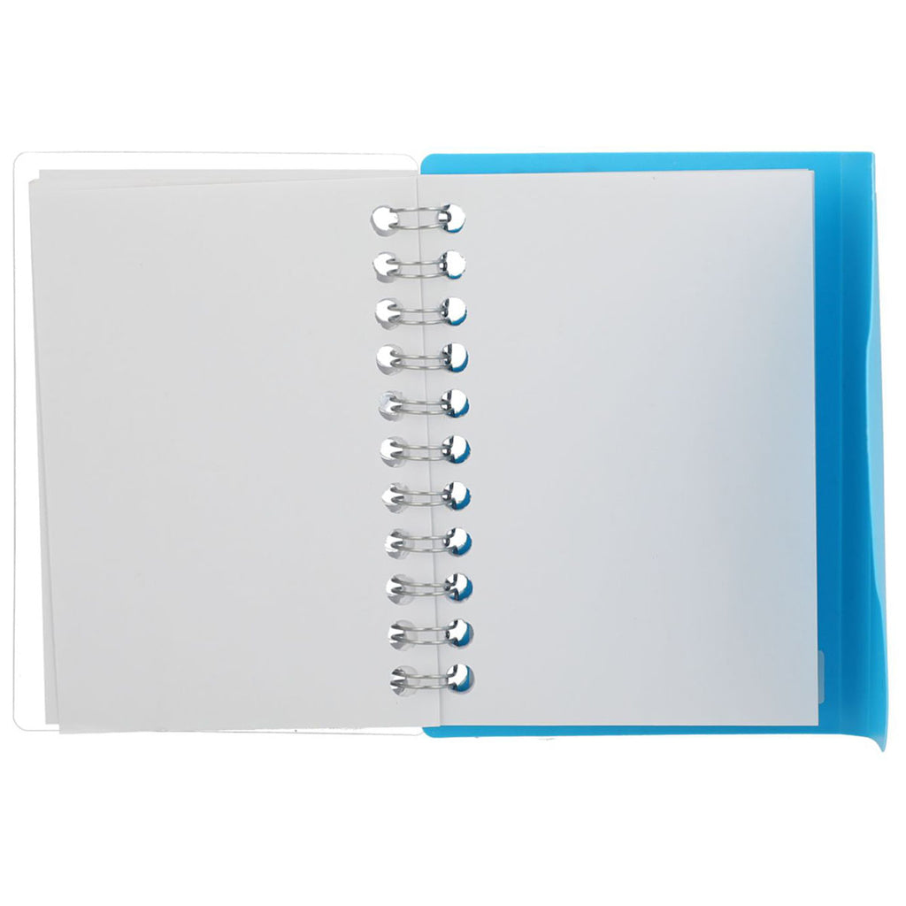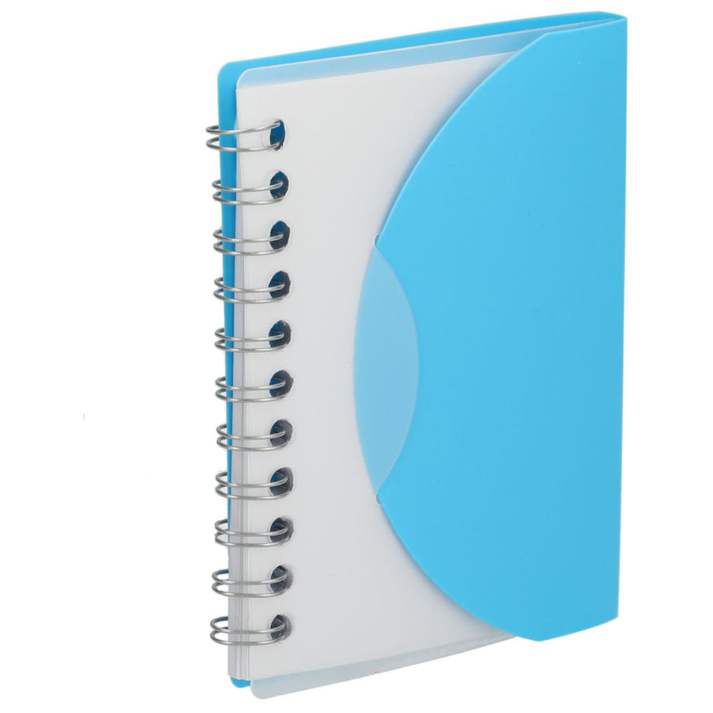 Adding your company's custom logo or design to the Bullet Translucent Blue Recycled Post Spiral Notebook will provide your team with a place to easily jot down all their great ideas. Made from environmentally conscious material, it features a sleek transparent cover and 60 blank pages inside.