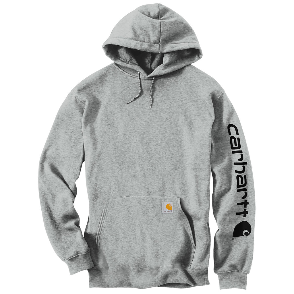 Carhartt Men's Heather Grey Midweight Hooded Logo Sweatshirt with a custom logo is the ultimate in athleisurewear. The layerable sweatshirt with front kangaroo pocket features the Carhartt logo along the left sleeve and is stretchable, triple-stitched, and loose-fitting. Great for working outdoors, working out, or lounging at home. Order today.