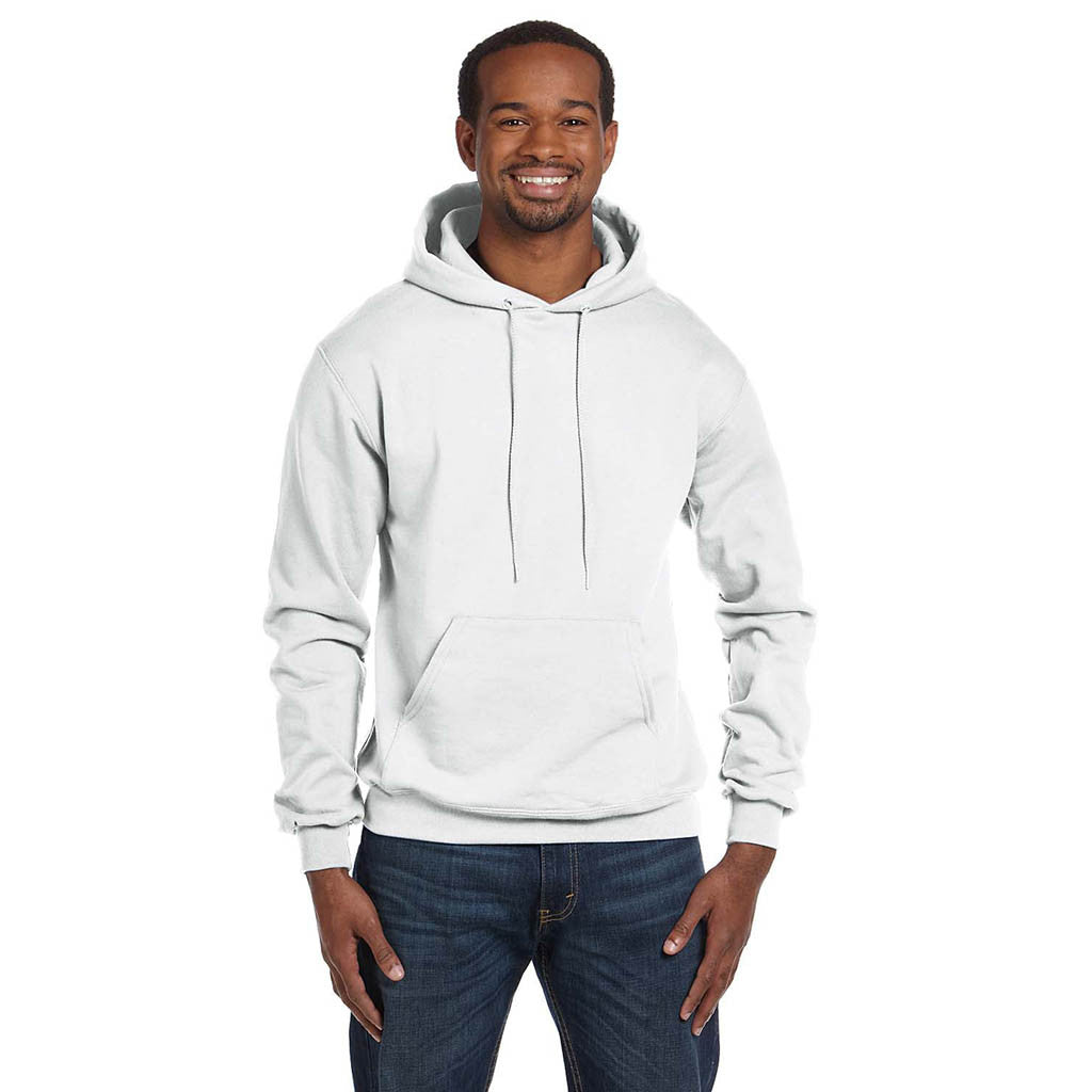 Your logo screen printed on this hoodie will be an instant go-to for your team. Soft, comfortable, versatile, and breathable, the Screen Printed Champion Men's White Hoodie Sweatshirt is a must for every closet. It's versatile enough for a number of seasons, and great for a casual, comfortable look no matter where you go. It is made with Eco fleece fabric, has rib cuffs, a rib waist, a two-ply hood and a front pouch pocket Above the left cuff there is a classic "C" logo. Sportswear doesn't get much better... until you add your screen printed custom logo to the front.