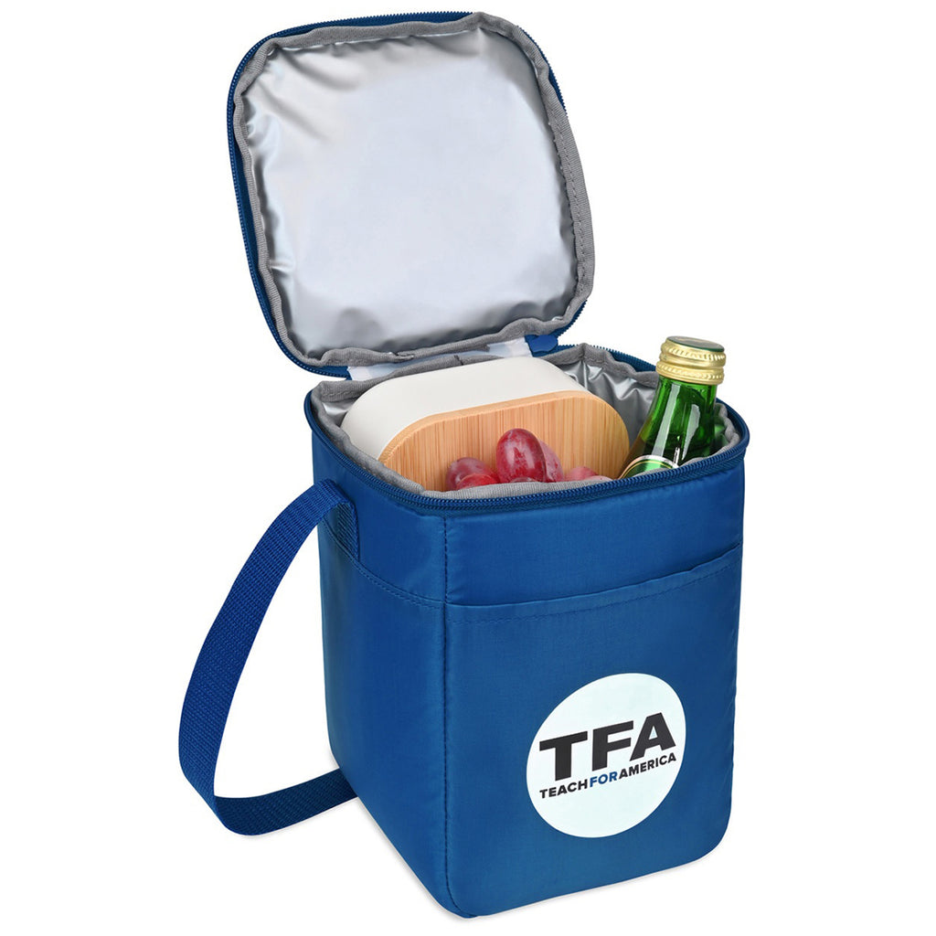 Carry your lunch in style with a custom Gemline Royal Blue Arlo rPET 6 Can Lunch Cooler. This cooler is perfect to take your lunch from home or pack some snacks for a road trip. The roomy bag holds up to 6 cans and has a zippered opening to the main compartment with a front slash pocket for extras.The minimum order for this product is 100 pieces.