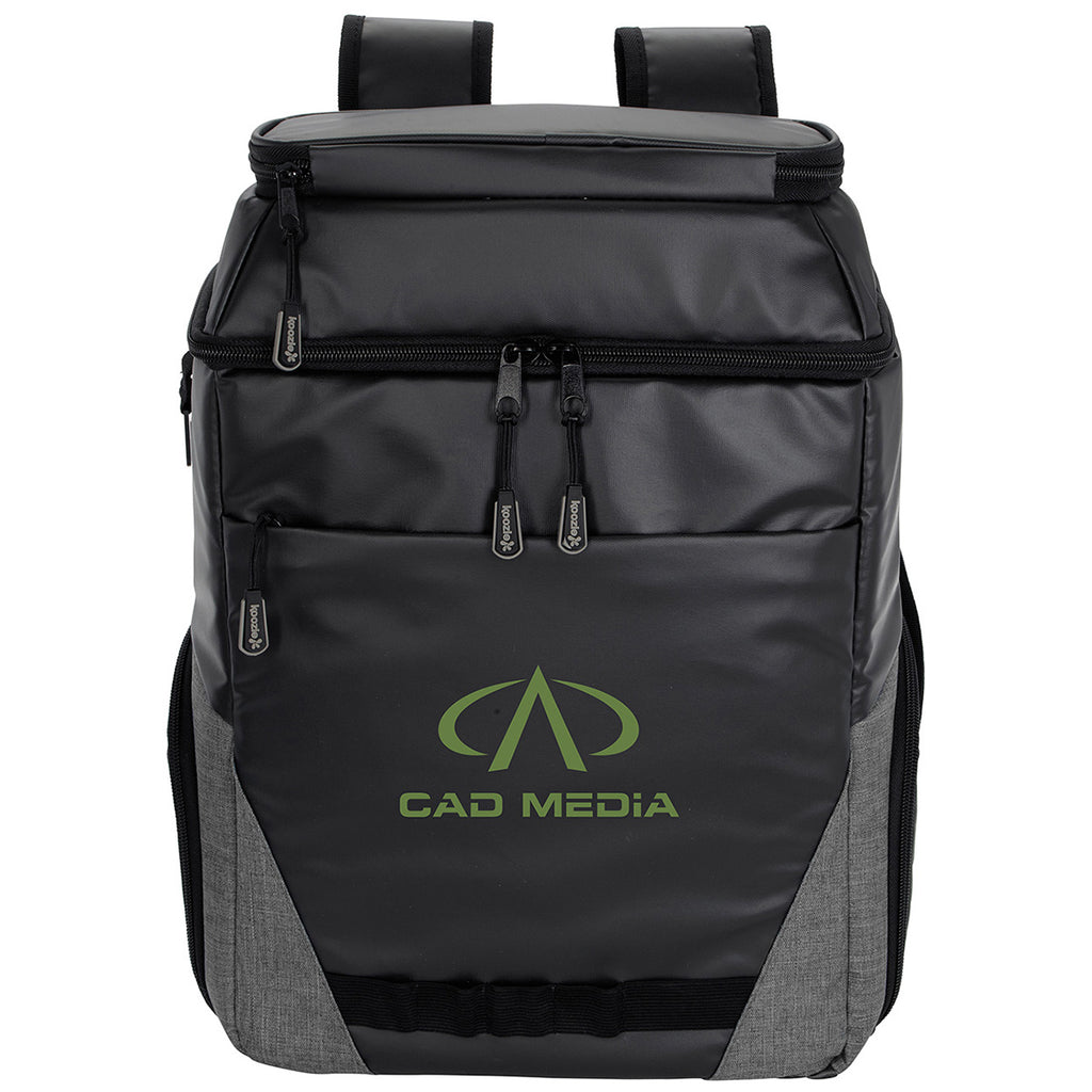 Koozie Grey Empire Recycled PVB Cooler Backpack with a custom logo will help you be prepared for adventure. This premium cooler backpack is made of easy-to-clean recycled materials with dual zippered compartments, a front pocket, and two insulated zippered pockets. Holding 24 cans plus ice, this is a must-have.The minimum order for this product is 12 pieces.