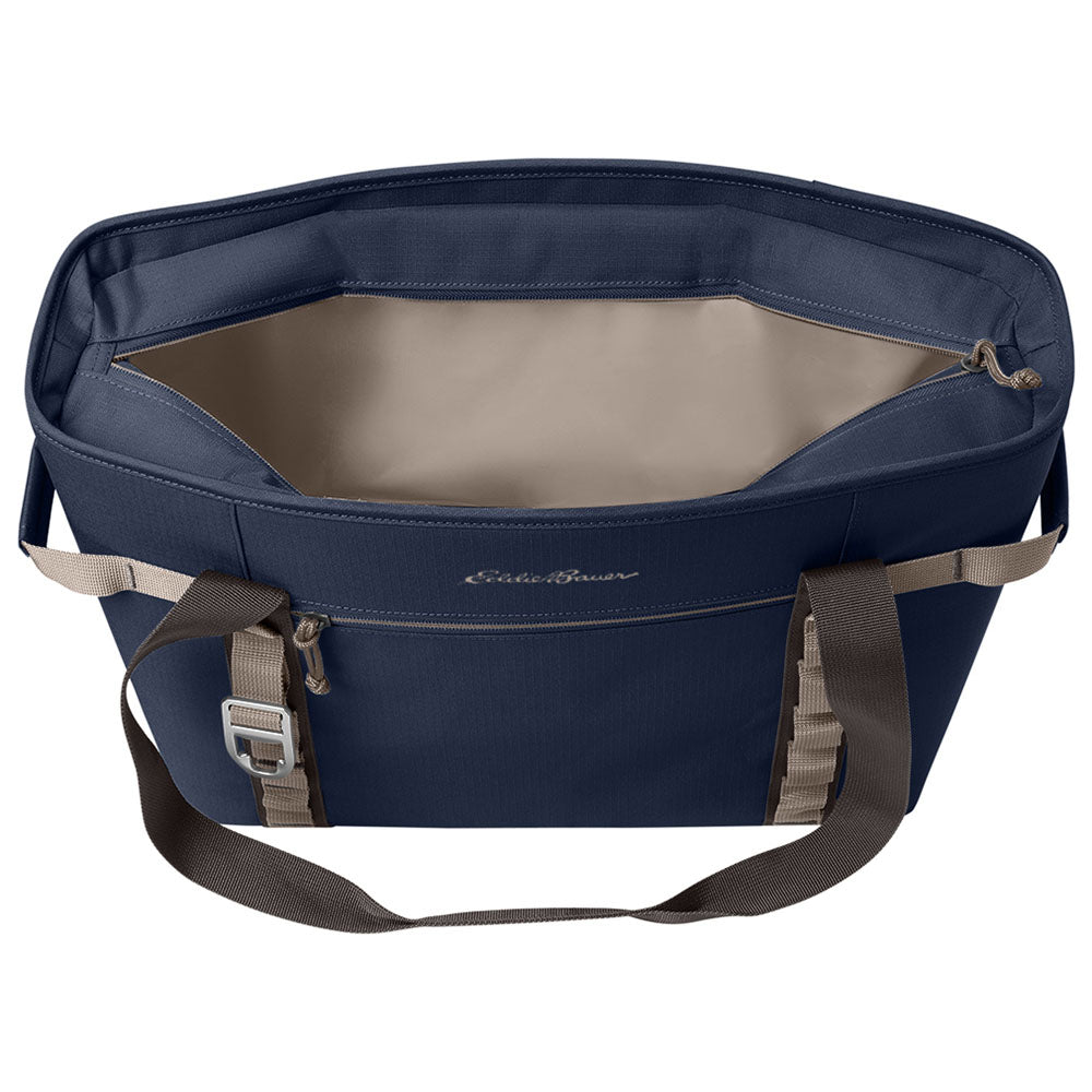 Keep organized with a custom Eddie Bauer River Blue Navy/Chrome Max Cool Tote. This bag-like tote is great for taking food to the beach, a park, or on a long road trip. The 1-inch thick, high-density, closed-cell insulating foam keeps cool items at the right temperature while allowing for easy access. Place your order today. These will sell fast.This product can only ship within the United States, Puerto Rico, Canada, and Mexico.