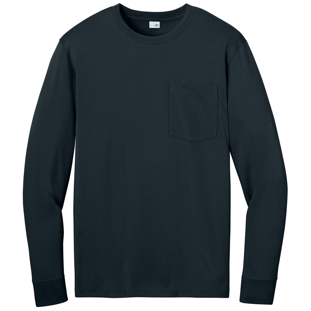 Custom logos enhance the CornerStone Men's Navy Workwear Pro Long Sleeve Pocket Tee, a reliable workwear staple. Durable fabric and a convenient pocket make it practical for long days on the job. As corporate apparel, it offers both function and professionalism, giving employees a comfortable uniform piece that reflects your brand.