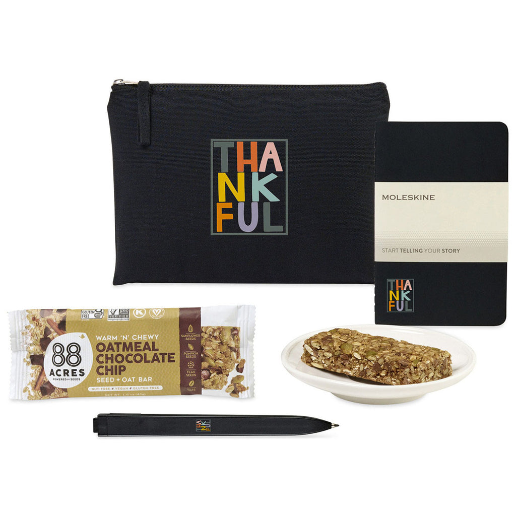 - Whether it's for a meeting, room drop, or welcoming a new hire, this set includes a compact notebook, a pen, and a snack, providing essentail tools and a boost of energy for any professional occasion