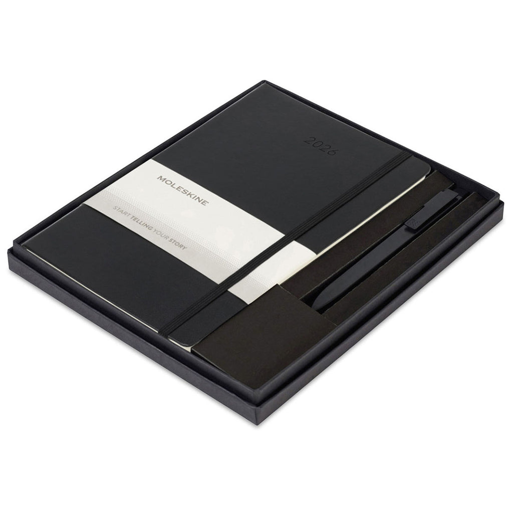 - This gift set includes one Hard Cover Large 12-Month Weekly 2026 Planner and one GO Pen packaged in a two-piece Moleskine gift box