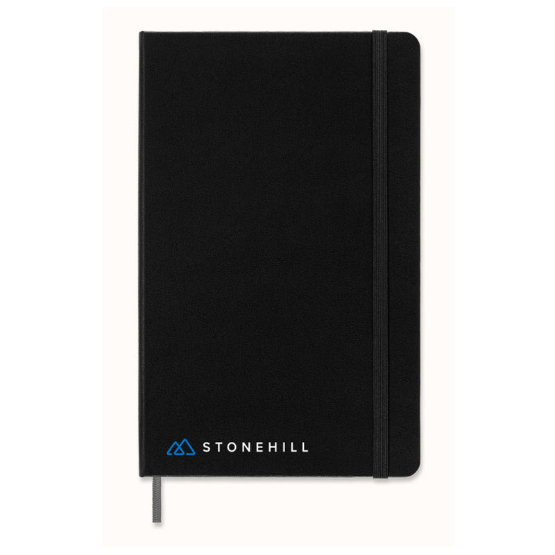 Take your office to the next level with the help of the Moleskine Black Hard Cover Ruled Large Smart Notebook. The sleek cover will proudly display your company's custom logo or design. Plus, each page features invisible Ncodes that automatically create a digital copy of anything that's written on the paper.Highlights