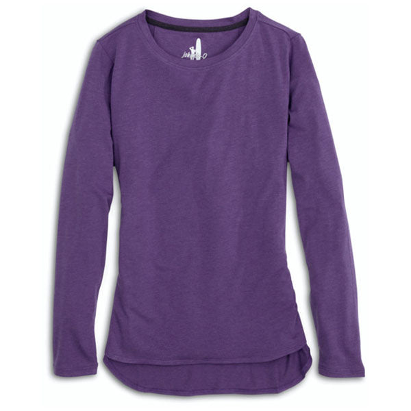 Add embroidery to the Johnnie-O Women's Purple Addison Long Sleeve Shirt to enjoy a custom look that is ready for some fun. Wear alone or layer this long-sleeved tee to your favorite sporting event, to work out, or just to chill with friends. The slightly longer hem offers coverage as you go about whatever your day may hold. Order yours today.Highlights