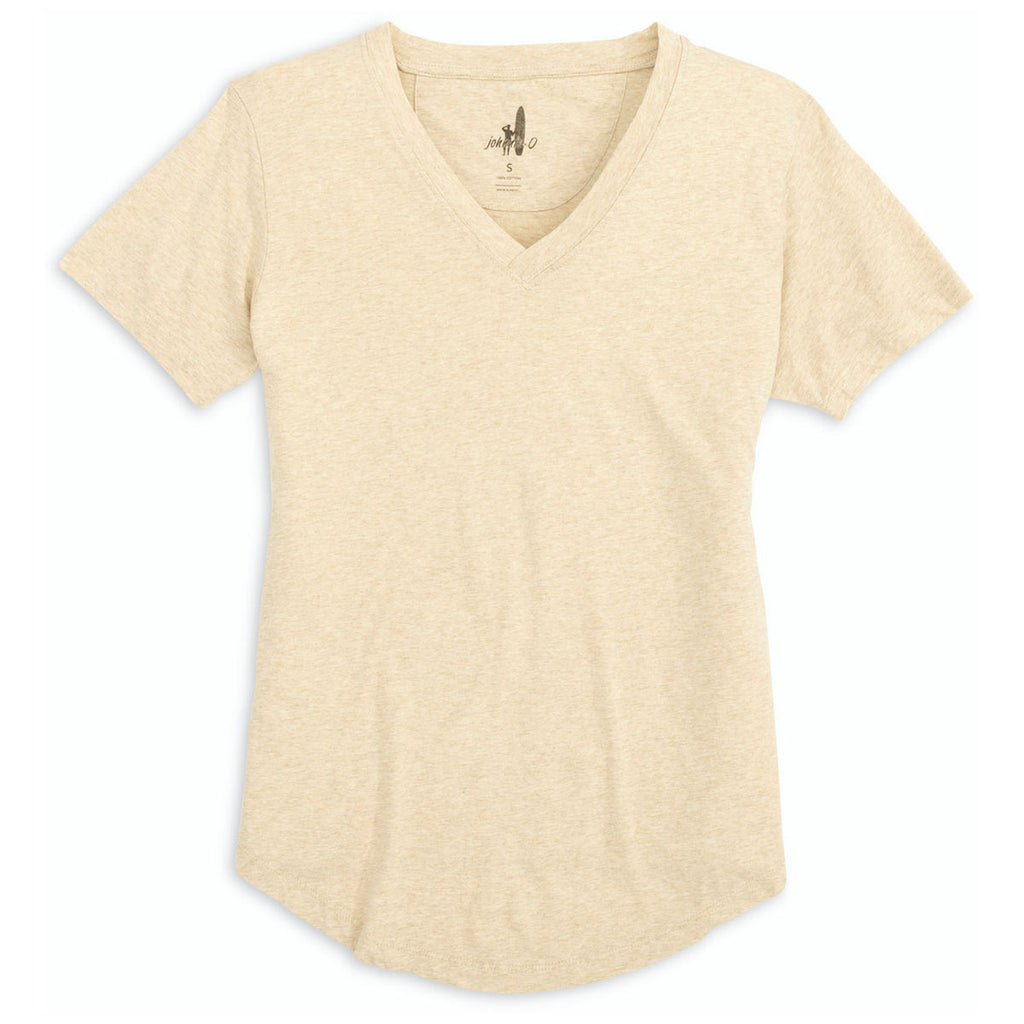 Show off in a custom Johnnie-O Women's Oatmeal Meredith Tee. This short-sleeved tee is highly versatile and can be dressed up or down as needed. The super-soft 100% cotton melange is great for washing and wearing as part of a uniform or just a wardrobe favorite. The V-neck design adds fashionable flair. Place an order today.Highlights