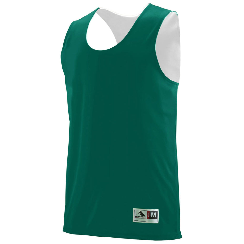 The custom Augusta Sportswear Men's Dark Green/White Reversible Sleeveless Jersey is the ideal tank to wear to company basketball team games. Available in 13 vibrant colors, this sleeveless jersey is reversible for scrimmage games and can have your company screen print logo added to it. Some of the features you'll enjoy with the men's reversible sleeveless jersey include dual layers of 100% polyester wicking knit fabric, bottom embellished hem, and outside locker label with size on the bottom of the jersey. Outfit your company basketball team with this jersey as employee apparel and make sure to have your company logo added for the finishing touch.Highlights