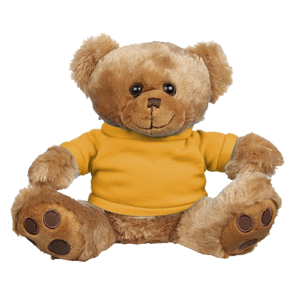Hit 8 1/2" Big Paw Brown Bear with Athletic Gold T-ShirtThe minimum order for this product is 50 pieces.