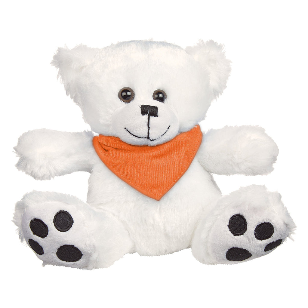 Hit 8 1/2" Big Paw White Bear with Orange BandanaThe minimum order for this product is 50 pieces.