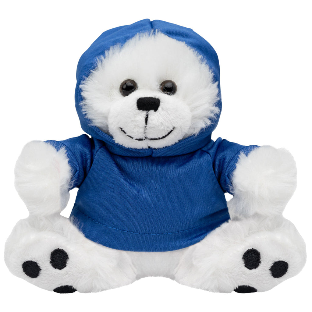Hit 8 1/2" Big Paw White Bear with Royal Blue HoodieThe minimum order for this product is 50 pieces.
