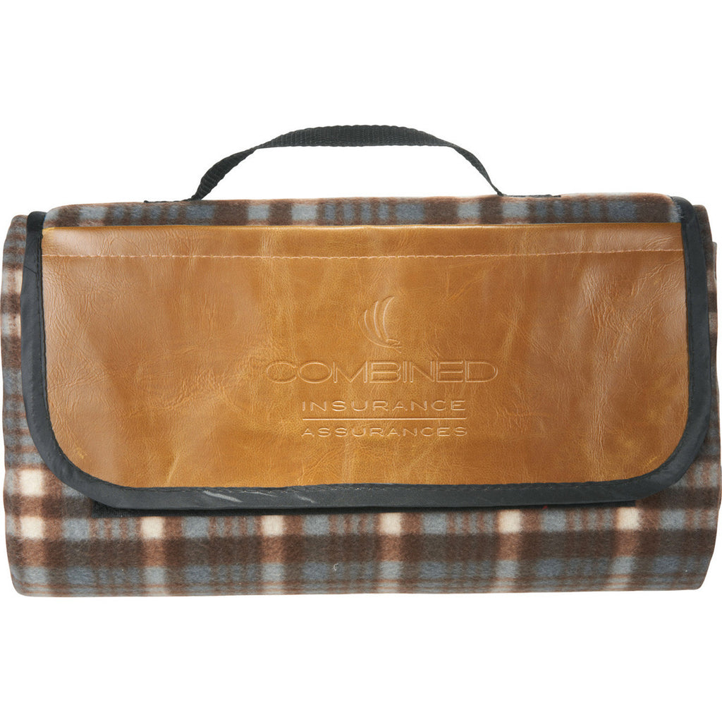 A convenient to use carry handle is only one feature of the Field & Co. Brown Picnic Blanket that separates the super soft blanket from the competition. The polyester fleece keeps the picnic blanket in mint condition for years of frequent use. The 4.5" by 11" pocket is the ideal place to store electronic devices for instant access. Foam padding and PEVA backing ensure you and your friends remain comfortable throughout your weekend getaway. The picnic blanket also works as the outer layer on a large bed. Add your corporate logo to connect with potential customers at civic and professional networking events.