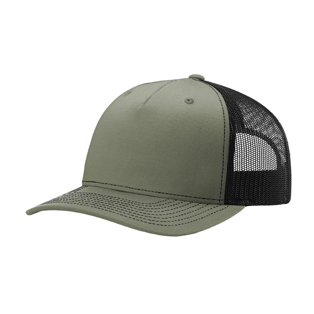 For repeated and visible advertising, marketing or sponsorship opportunity for company sports events, the Richardson Loden/Black Mesh Back Five Panel Trucker Hat is set to sport your corporate logo or team name. This cap's mesh back construction ensures optimal breathability, while the pre-curved visor keeps the sun away from eyes. Express your brand swag or team spirit with this customizable trucker cap from Richardson.The minimum order for this product is 48 pieces.
