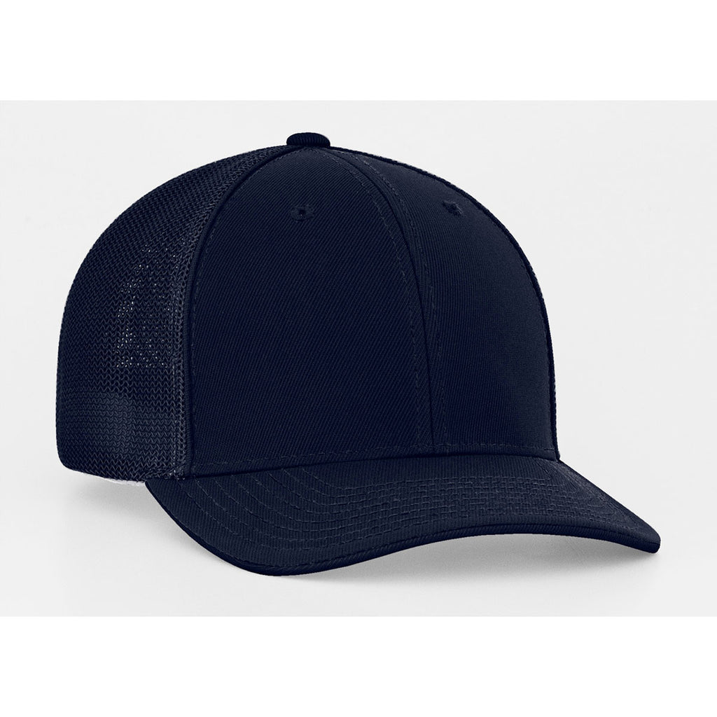 The logoed Pacific Headwear Navy/Navy Universal Fitted Trucker Mesh Cap makes the ideal corporate gift for savvy managers who want to impress potential clients. Whenever you invite customer prospects to the office or plant, add a custom logo that leaves a positive impression on your guests. The comfortable cap contains a spandex Trucker mesh back to stretch and fit most size heads. Air circulates through the durable mesh to keep you cool under pressure. M3 performance fabric front panels create a structured appearance that leaves no doubt who is in charge. Logoed corporate apparel helps increase sales by getting the word about your company.Highlights
