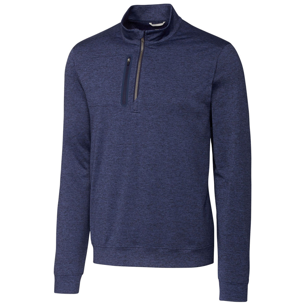 Cutter & Buck Men's Liberty Navy Stealth Heathered Quarter Zip Pullover with a custom logo will be an instant favorite at work, home, and beyond. The pullover offers 50+ UV protection, moisture wicking, and stretch meaning it is perfect for travel, working out, golf, tennis, and much more. Layer with a polo or dress shirt to wear to the office and remain comfortable. Place an order today.Highlights