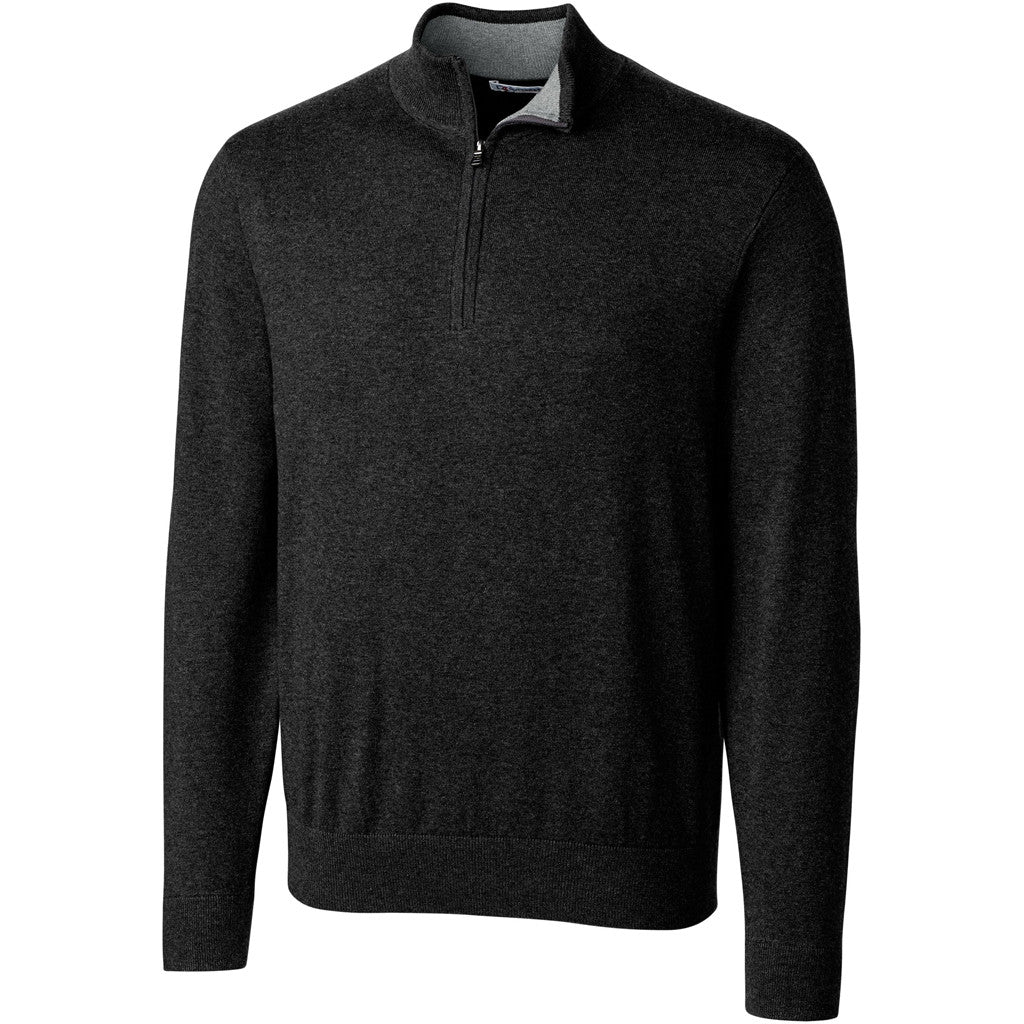 There's nothing that says stylish and casual quite like a half zip-but not just any half zip will do. If you want a quality layering piece that will be comfortable to wear, choose an option like this Cutter & Buck Men's Black Lakemont Half Zip. The construction is an intriguing way to infuse the fabric with comfort and durability, while the small details like a linked seam provide you with more everyday style than you would have imagined a half zip can deliver. Add your corporate or custom event logo to this half zip to complete the picture.Highlights