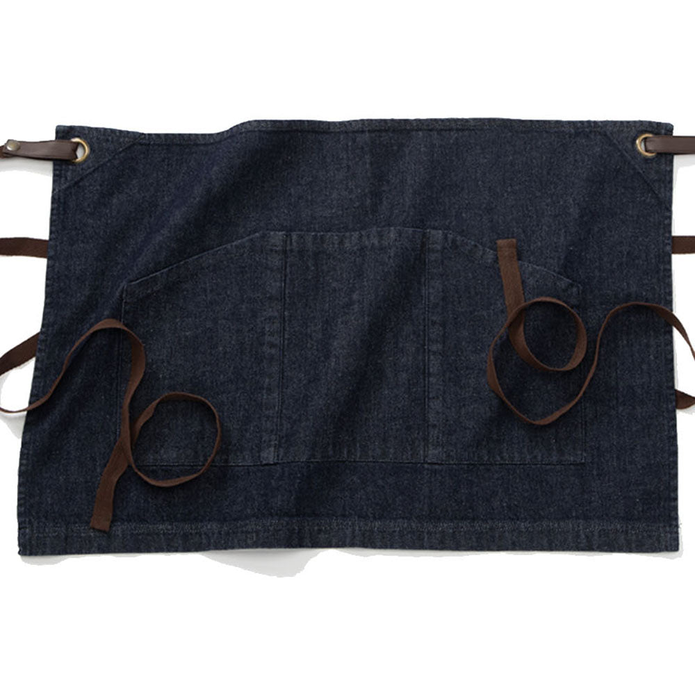 Enjoy a custom look with the Edwards Indigo Denim 3-Pocket Denim Waist Apron. The ideal way to add style to your culinary look, whether a professional or amateur. The apron comes with two faux leather straps that fit into antique brass grommets. Machine washable with three large pockets, this is a must-have. Place an order today.Highlights
