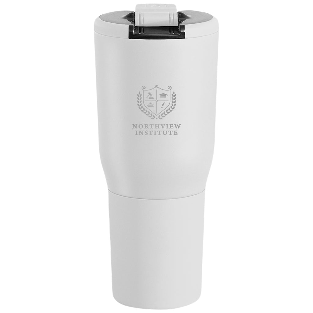 Create a corporate logo for the BruMate Matte White 35 Oz. NAV to use at recruiting events or to welcome new people into an organization. The streamlined tumbler will keep drinks cold for up to 24 hours and hot for up to six as you head to work, class, or out running errands. Perfect for college recruiting events, new hire gifts, or to add to your custom items.The minimum order for this product is 24 pieces.