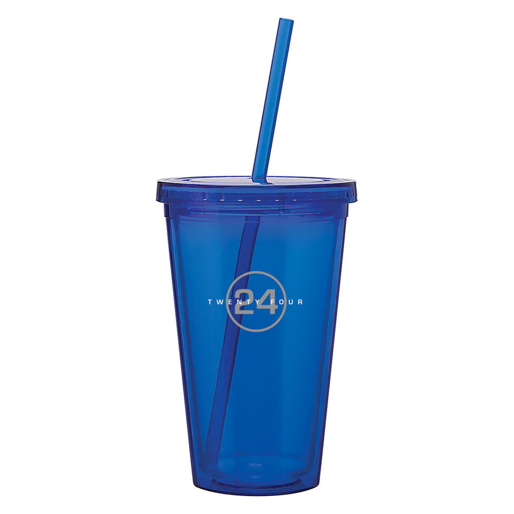 Refresh your hydration routine with this 16oz double-walled insulated travel tumbler to make most of hot and cold beverages while on the go. Comes with a matching lid and straw. This ETS Blue Spirit Acrylic Tumbler 16 oz can be featured with a custom label or logo for use as gift marketing/awareness campaign.
