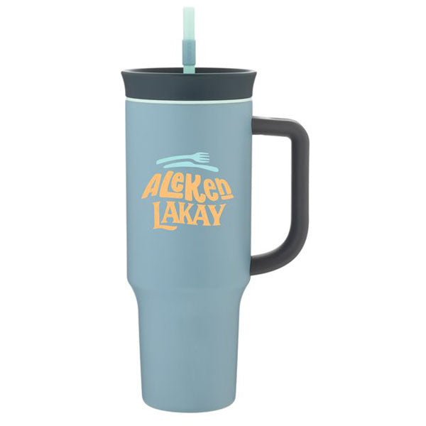 The Owala Lost VAlley 40 oz Tumbler keeps your ice-cold drinks on hand for all-day sipping. The adjustable handle allows for a comfortable grip for both left and right-handed users. Choose from sipping with a straw or swigging through the sprout. Add a custom logo and watch the bright eye-catching color combinations highlight the customization.