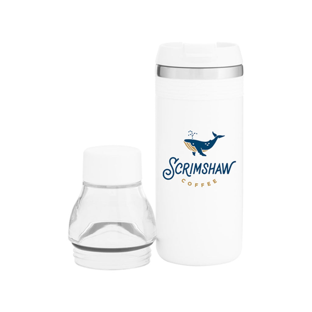 Show your creativity with a custom H2Go Matte White Orion. This unique stainless steel double-wall thermal tumble comes with a screw on top to easily convert it to a bottle. Easily commute with your tea, coffee, or water. Ideal as a gift or prize as this comes with a gift box. Use this thermal tumble to promote your next charity event or sale.