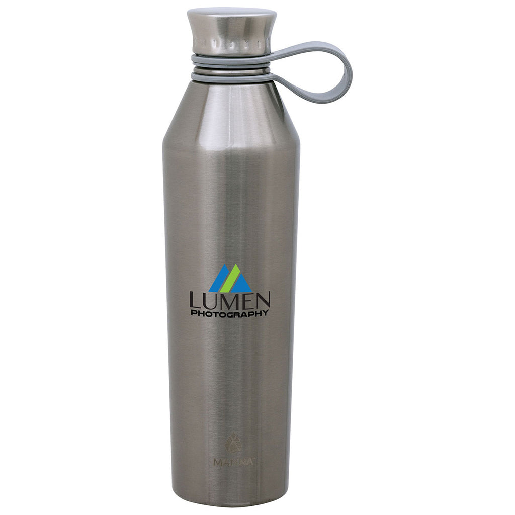 The Manna 25 oz. Haute Steel Bottle features quality craftsmanship and a stylish metallic finish. Available in a selection of contemporary color options, this exceptional water bottle will provide the perfect backdrop for your company's custom logo or design. Use it as an employee giveaway to show how much you care.The minimum order for this product is 24 pieces.