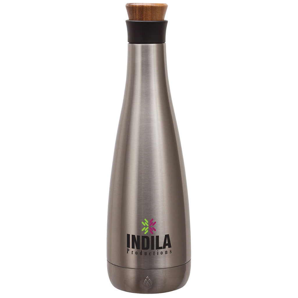 Sleek and sophisticated, the Manna 25 oz. Carafe Steel Bottle is an upscale item that will show off your company's custom logo wherever it goes. It's made from double walled stainless steel so it's able to keep the liquid inside at an ideal temperature all day long. The acacia wood lid provides the perfect finishing touch.The minimum order for this product is 25 pieces.