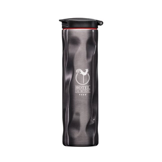 K & R's Chiseled 16oz tumbler features a sturdy stainless steel build and a screw on, spill proof flip lid with a contrasting silicone ring. Customize this tumbler by adding an imprint of your custom logo for promoting your company, fundraising or corporate gift giving.