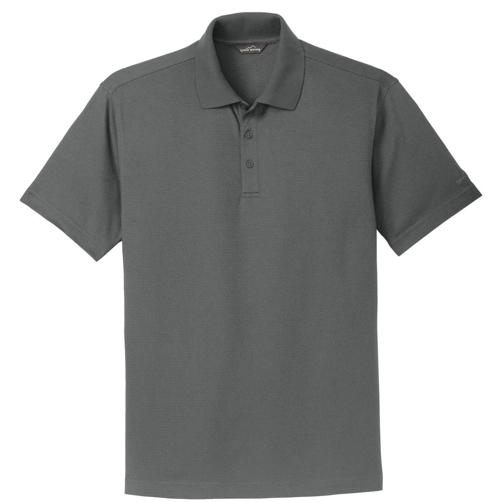 There are a lot of variables that go into making an everyday, work-ready polo. Consider this Eddie Bauer Men's Grey Steel Performance Polo, for example. Featuring a 4.7oz. lightweight construction, it feels great all day long-almost as if you're not even wearing it. And with attention to detail like a flat knit collar and three buttons dyed to match the fabric, you can't go wrong with the style, either. This is the polo that makes for ideal layering-or can be used around the office as perfect employee wear. If you need a new employee uniform that's stylish and durable, add your logo to this polo with our custom embroidery process. Not your run-of-the-mill polo. This cotton-rich, high-performance essential wicks moisture and controls odor for optimal comfort. With an easy care blend, it also resists wrinkles and shrinkage and features UPF 30 sun protection for wherever adventure takes you.