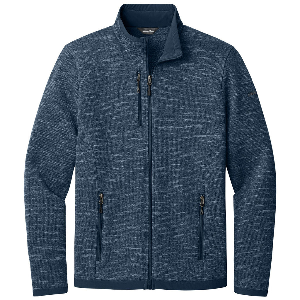 Take on the cooler weather with a custom look with the Eddie Bauer Men's River Blue Heather Sweater Fleece Full Zip. Create a unique look with a custom logo to offer as part of employee uniforms or add a team name for team events related to the company or organization. The authentic outdoors look is created from the polyester sweater fleece paired with a polyester spandex blend for comfortable wear. The perfect end of year gift for friends or employees, this full zip sweater is equipped with plenty of pockets, a cadet collar, and open hems for easy layering and overall wear. Place an order today to get the design you want and need.