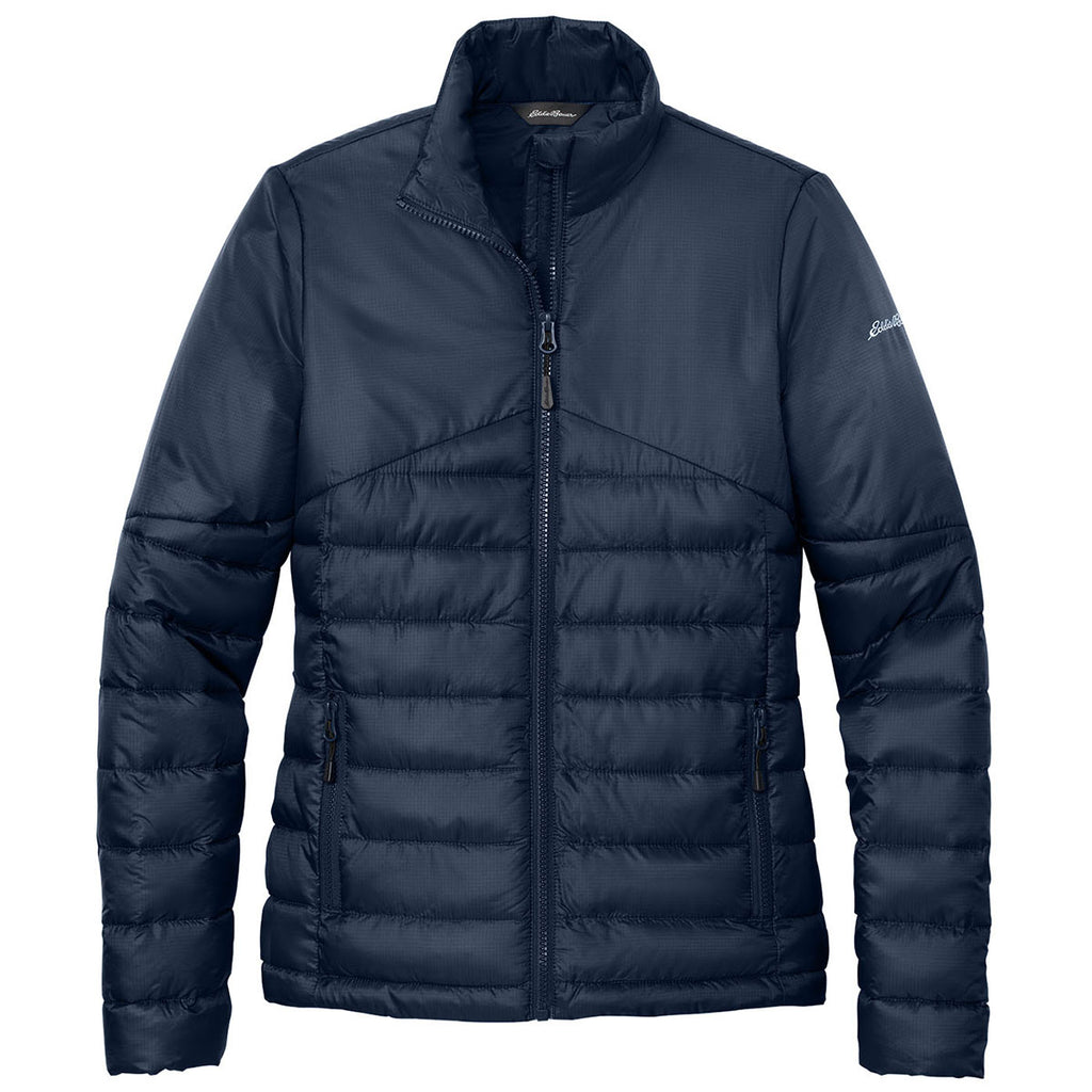 Add embroidery to the Eddie Bauer Women's River Blue Navy Quilted Jacket for a great cooler weather look that will turn heads. This jacket comes together with minimal bulk yet maximized performance for all your adventures. A perfect choice for snowboarding, skiing, or other outdoor fun. Place an order today.This product can only ship within the United States, Puerto Rico, Canada, and Mexico.