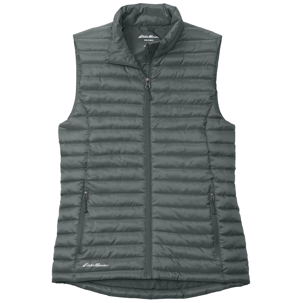 Eddie Bauer Women's Metal Grey Packable Quilted Vest with a custom logo is a must-have for the adventurers in your life. Made for warmth and weather-resistant performance, this vest packs into its own left pocket when not in use. Ideal for hiking, biking, jogging, and more. Place your order now before supplies run out.This product can only ship within the United States, Puerto Rico, Canada, and Mexico.