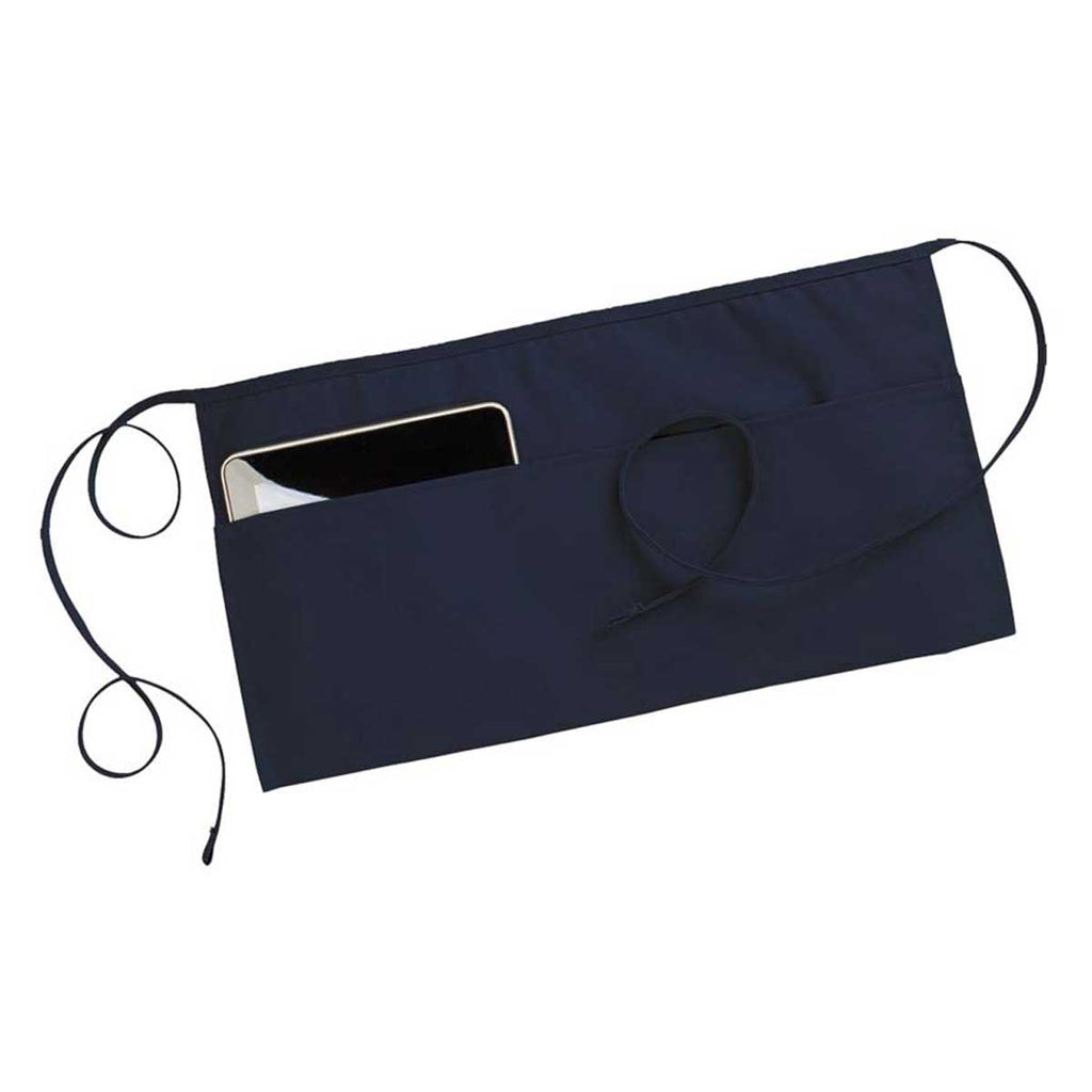 Who doesn't need or want a custom Edwards Navy 3-Pocket Waist Apron? This simple, classic waist apron can be embroidered with your company logo or corporate brand as a great way to personalize a uniform in multiple colors or employee apparel for those working in the food industry in some form or fashion, especially wait staff. Made of a polyester cotton twill blend this apron can be machine washed as needed. Add your custom logo to the adjustable waist apron with long ties for front and back closure. The one size fits most style means both men and women can comfortably wear this apron while working.Highlights