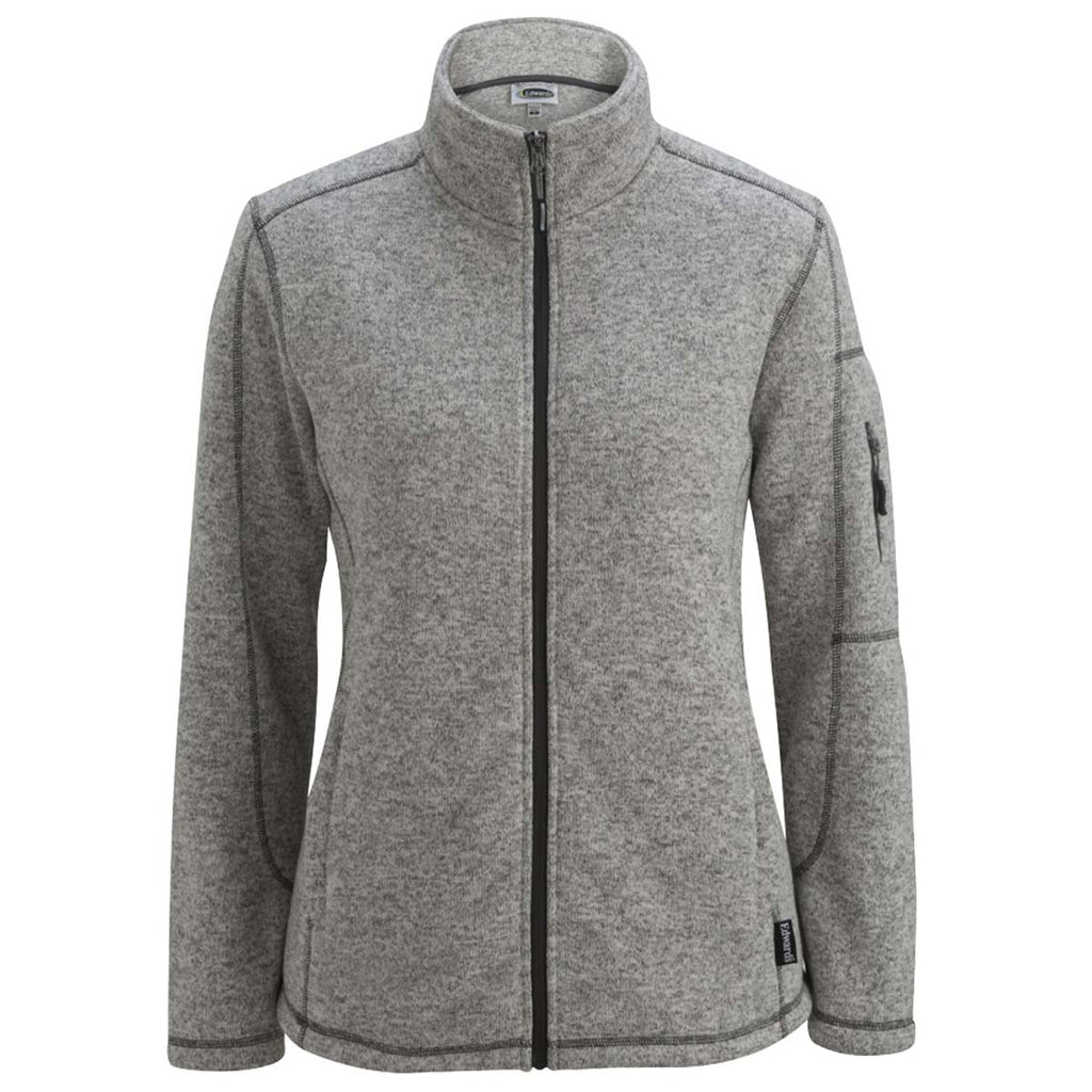 Enjoy this unique take on a custom look with the Edwards Women's Athletic Grey Heather Sweater Knit Fleece Jacket in grey, blue, and black heather. Made of 100% polyester this knit fleece jacket is warm and comfortable. The soft fleece fibers easily trap and hold body heat on chilly days. Add a corporate embroidery to use these as part of corporate uniforms or a company logo to utilize these as part of employee apparel. The two zippered side pockets and right chest pocket will keep belongings safe as you go about your daily routine. Coordinating zippers and stitching adds flair to the already unique piece.Highlights