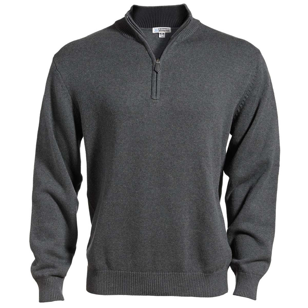 Edwards Men's Charcoal/Black Cotton Blend Quarter Zip Sweater