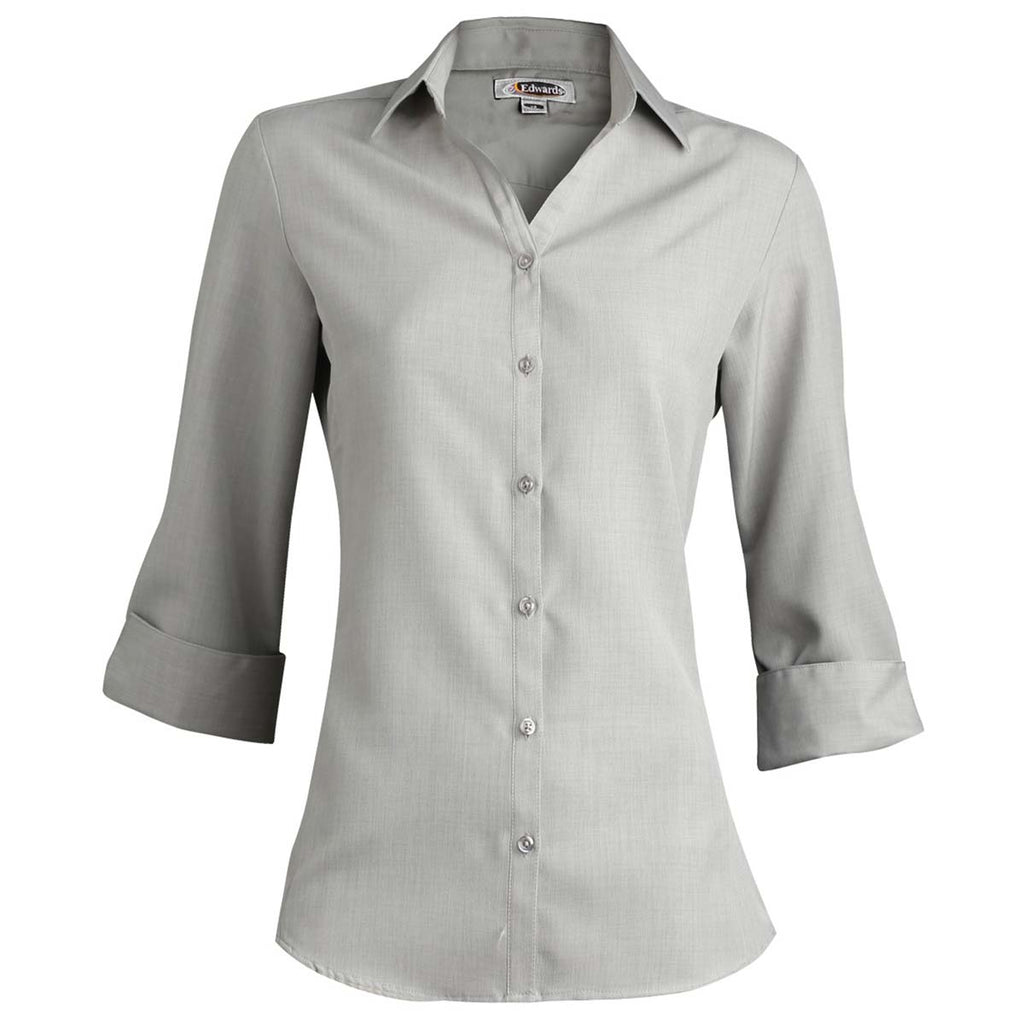 Create a custom tailored look with the Edwards Women's Platinum Batiste 3/4 Sleeve Shirt made of 100% polyester. The sophistication found in this blouse is unmatched with 3/4 sleeves with notch details and button closure. Add your corporate embroidery to this beautiful blouse and use as employee apparel or hospitality apparel for larger events. Your company logo will stand out against several color options on this wrinkle resistant, soil release, moisture wicking, easily laundered uniform blouse that will stand the test of time. Place an order today to have a professional look for your opening or next event.Highlights