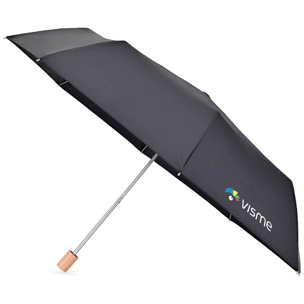 Design a corporate logo for the Elements Black 43" Recycled Manual Folding Umbrella to give a useful gift that can be used as often as needed. The umbrella is made from recycled materials on a lightweight aluminum frame that opens manually. Perfect as a promotional item or gift for clients.