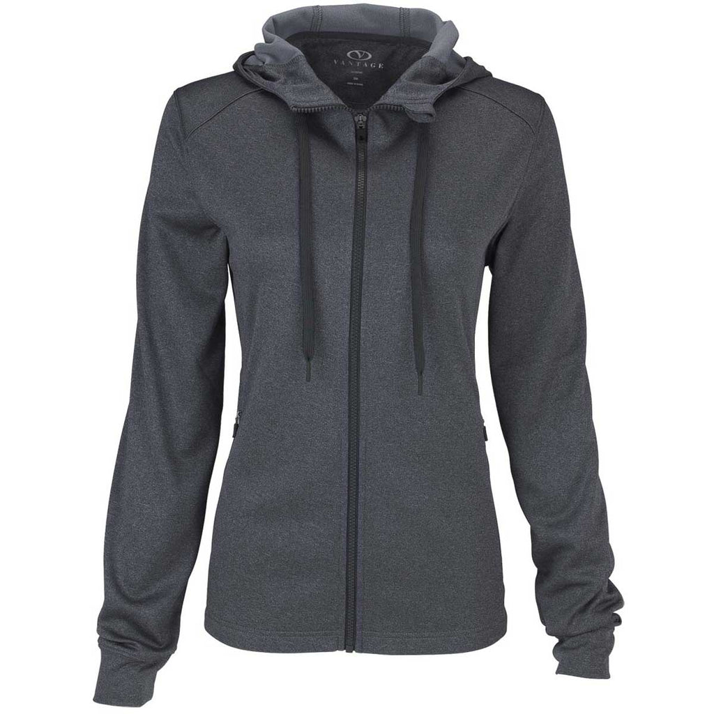 Play, train, or commute to work in a custom embroidered Vantage Women's Dark Grey Street Hoodie. A creative 100% polyester full zip hoodie with a company logo will be the choice of apparel for company uniforms or daily wear. Perfect for golf events when the weather is not the best, this comfy brushed back fleece hoodie allows for range of movement and ideal fit. Available in three classic colors, your custom logo and design will stand out. Zippered pockets allow for small items to be secured whether you are going for a jog or heading out to work.Corresponding Men's Style: Vantage Men's Dark Grey Street Hoodie