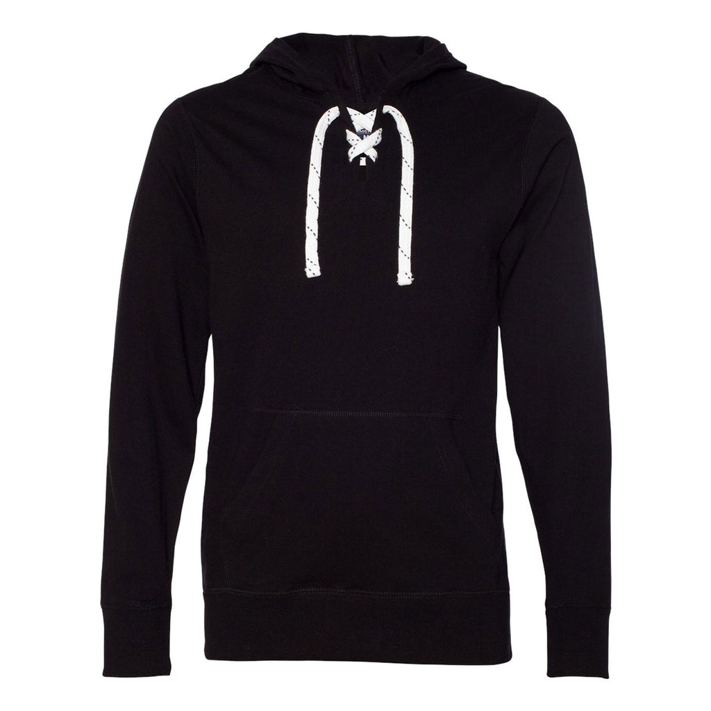 J. America Men's Black Sport Lace Jersey Hooded Pullover T-Shirt