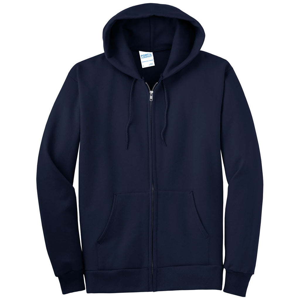 Port & Company Men's Navy Essential Fleece Full-Zip Hooded Sweatshirt