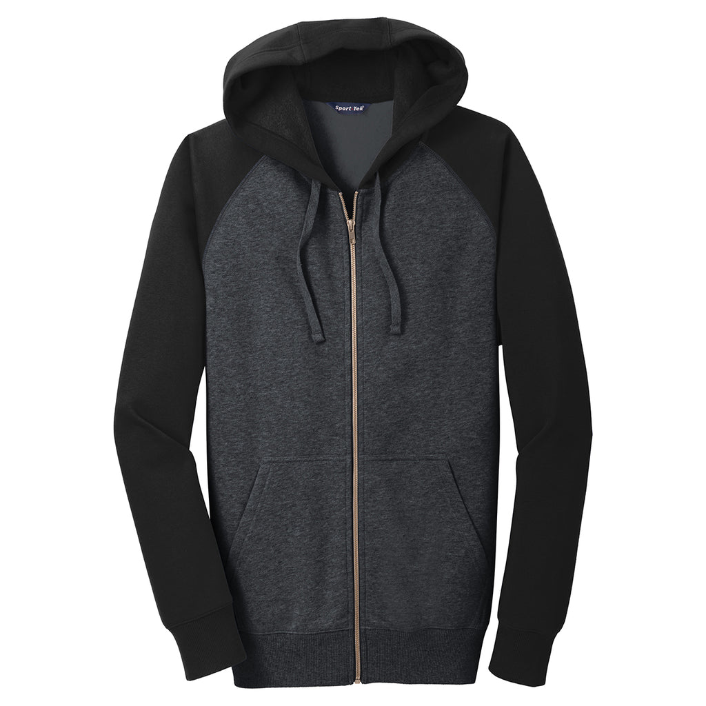 Sport-Tek Men's Graphite Heather/Black Raglan Colorblock Full-Zip Hooded Fleece Jacket